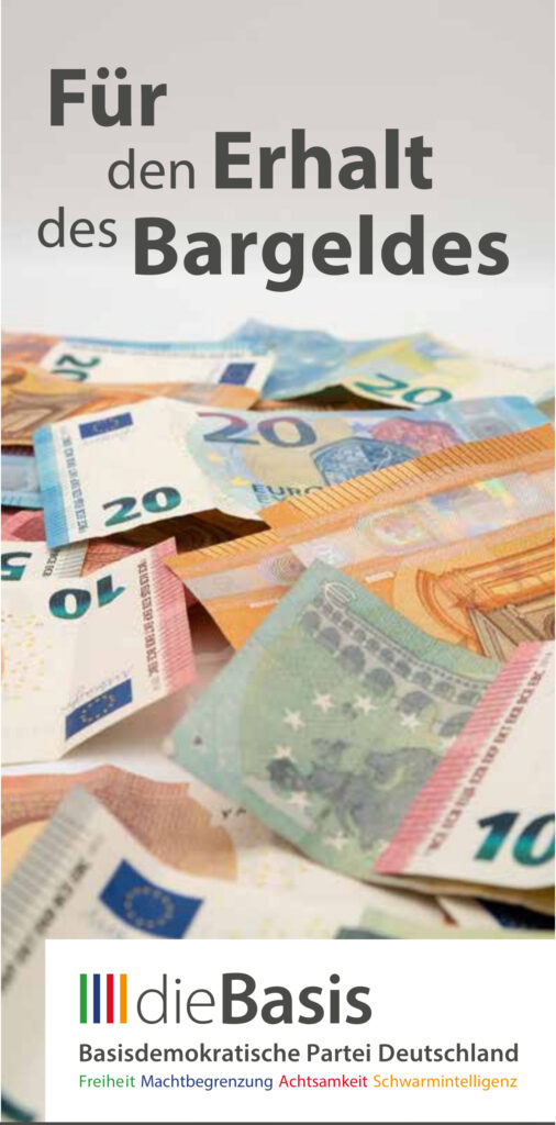 Ein Flyer über die gewichtigen Vorteile von Bargeld und der Bargeldnutzung.